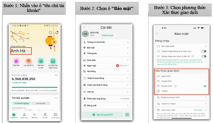 - Đối với trường hợp yêu cầu sử dụng Token Card, Khách hàng vui lòng liên hệ FPTS để được đăng ký sử dụng.