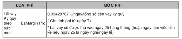 - Ngày thanh toán lãi vay là ngày 25 hàng tháng hoặc ngày làm việc kế tiếp nếu ngày 25 là ngày nghỉ, ngày Lễ và thứ Bảy, Chủ nhật. Vào ngày thanh toán, tiền lãi vay sẽ được chuyển thành một khoản vay và cộng dồn vào dư nợ ký quỹ.